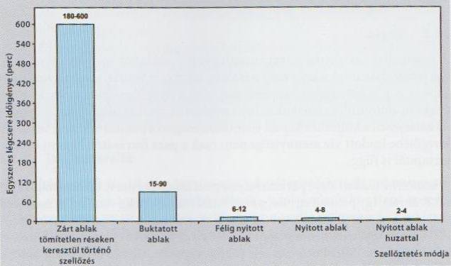 2. ábra A hagyományos szellőztetéssel az egyszeres légcseréhez szükséges időtartamok