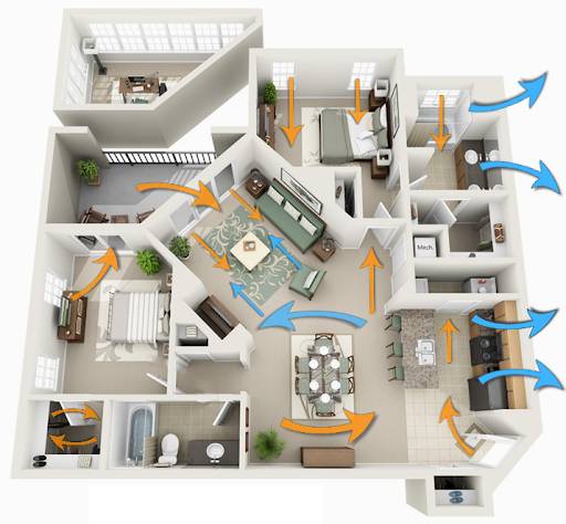 helyeken (fürdőszoba, WC, konyha stb.) elszívóberendezést alkalmazunk; a